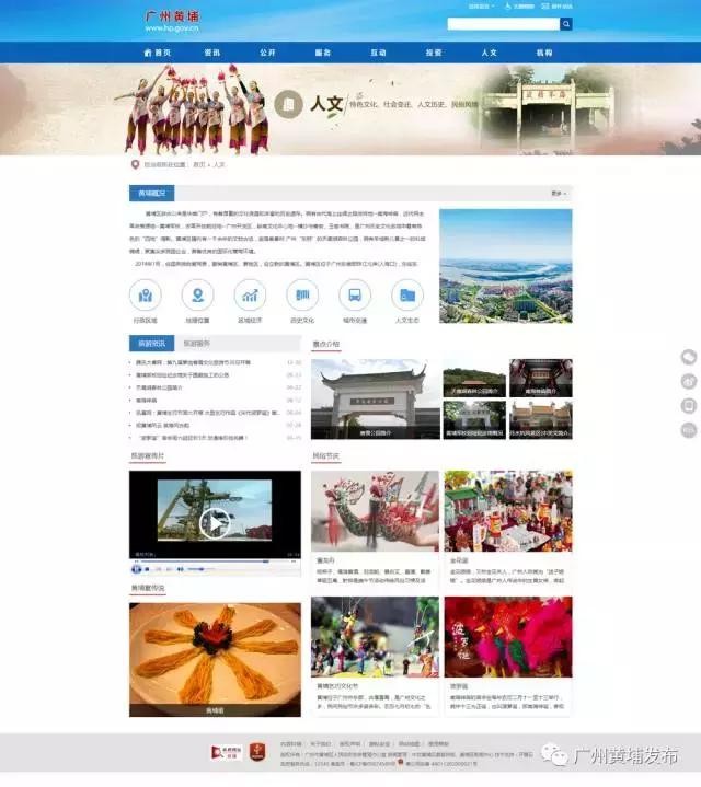 本次网站改版升级采用高清大幅的形象图作为整个网站的开幕。“古代海上丝绸之路发祥地”、“建设广州国际枢纽核心区”、“兴业宜居”三幅大型形象图,展现出黄埔深厚文化底蕴和区情特色,页面互动感强,排版新颖活泼。