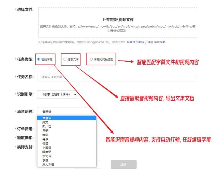 支持上传的音视频格式、识别的语种,以及导出的字幕文件格式都还蛮多的: