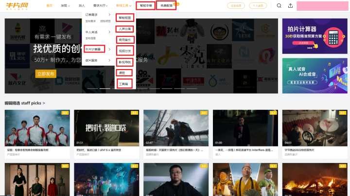 网站内除了教程外,它还提供有影视相关的工具,堪称一站式影视处理平台。它包含的工具有AI智能配音、一键生成字幕视频、商用音乐、人声分离、视频价格计算器、影视导航合集、影视工具箱......