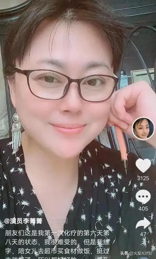 李菁菁在社交平台上晒出自拍视频并自曝患乳腺癌。
