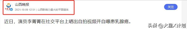 2021年10月5日,李菁菁直接在自己的社交账号上坦言,称这是自己乳腺癌手术的第三天。