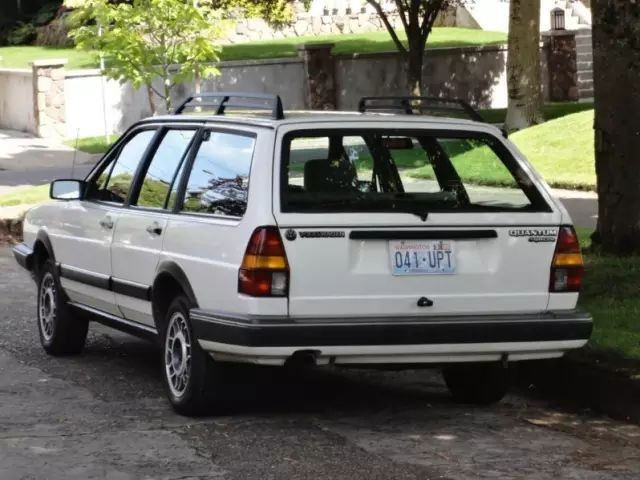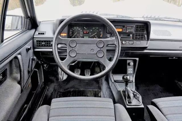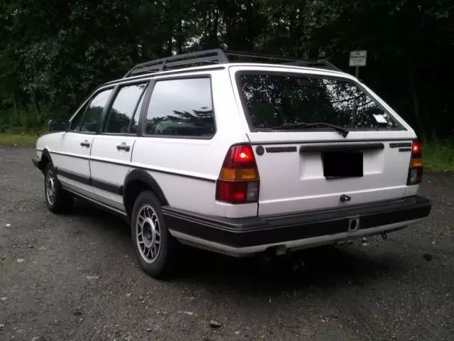 Passat B2 Variant Syncro的首次亮相是在1983年的法兰克福车展,1984年投入生产。四驱版车型在外观细节上还是有些不同的,黑色轮眉,铝合金轮圈,行李架,黑色门框,但这些还不是重点。