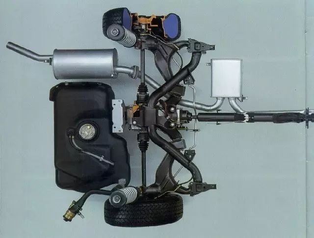 这样对比就很明显了,四驱车型的后悬架完全不同,细心的车友会发现,连油箱的位置都变了