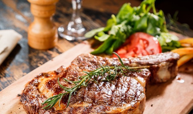 6、牛排出炉后,把热好的红酒浇在牛排上即可。