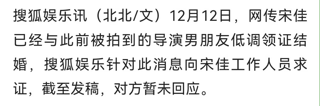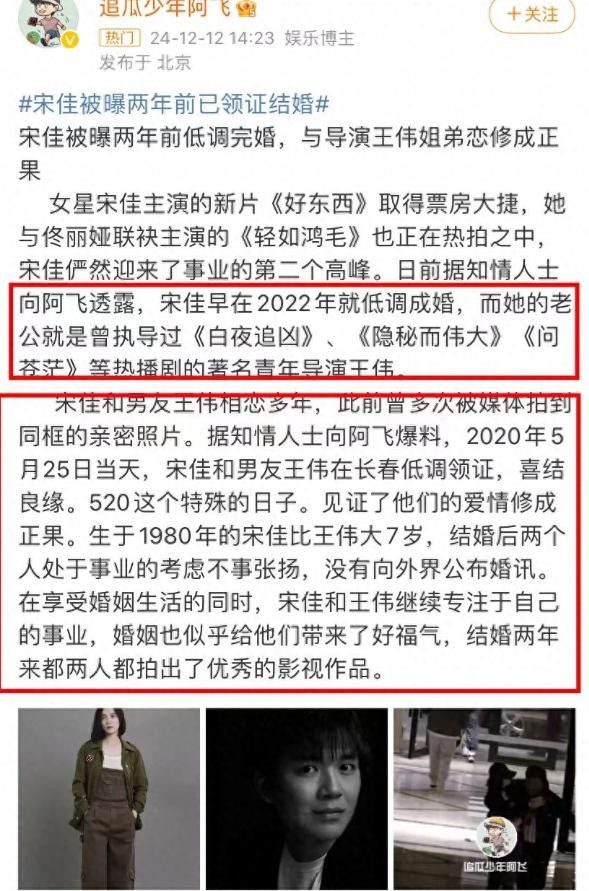 近日,有网友爆料:演员宋佳和小七岁的男友王伟已经隐婚两年!