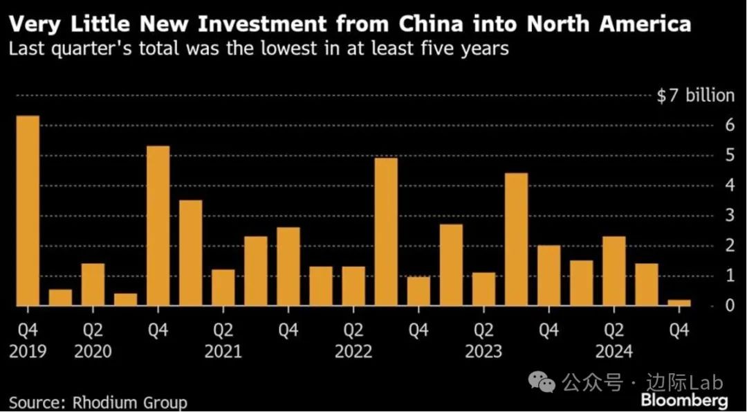3.受美国政策限制和企业对特朗普胜选后的不确定性影响,荣鼎集团数据显示,去年四季度中国对美、加、墨的新投资仅1.91亿美元,同比锐减90%。相比之下,中国企业同期宣布的全球对外投资达165亿美元,非洲和中东成为最大投资目的地。