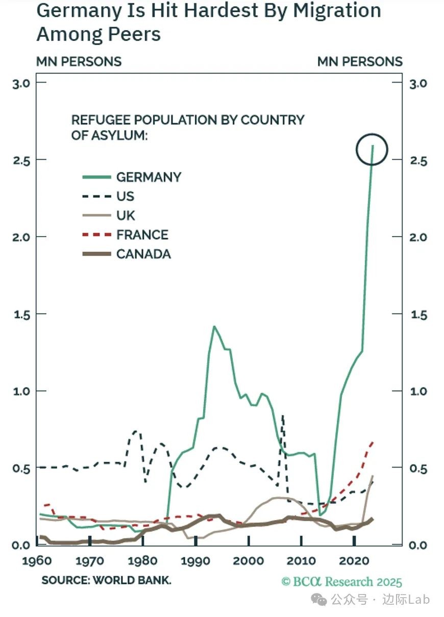 2.德国是自1960年以来接收难民人数最多的国家,尤其自2015年难民危机以来,进入德国的难民人数激增。这凸显了移民问题在德国选民心中的重要性,且随着反移民的德国另类选择党席位增多,其他党派在移民政策上的立场也面临压力。