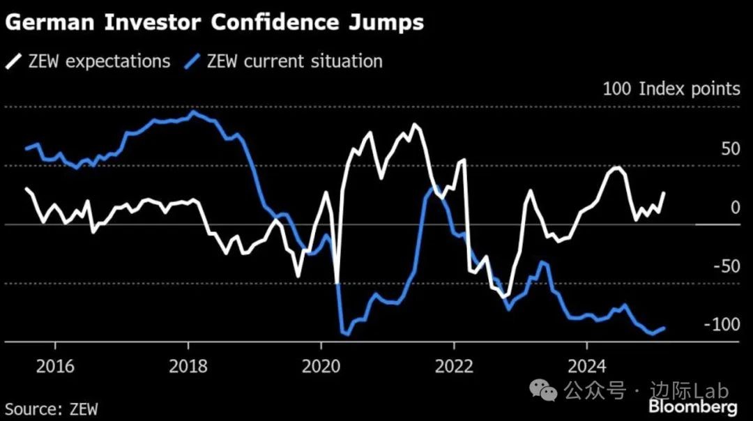 1.受即将举行的选举可能带来更友好的政府及降息提振需求的影响,投资者对德国经济的信心显著改善。ZEW研究所2月预期指数从1月的10.3升至26,超出市场预期,创两年来最大涨幅,而衡量当前状况的指标也有所上升。