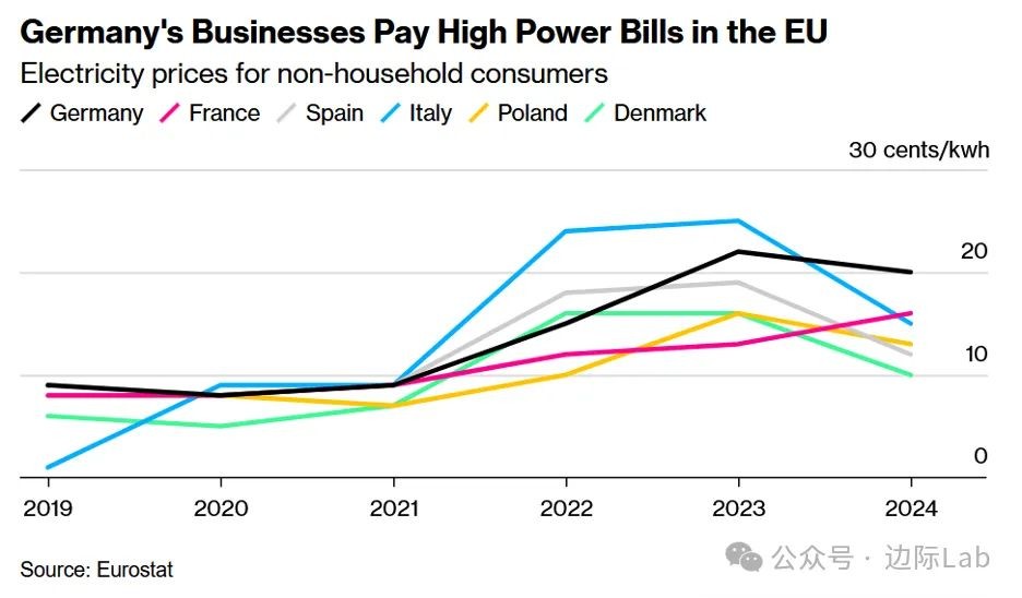 3.根据欧盟统计局的数据,2024年德国企业的电价达到每千瓦时20欧分以上,为欧盟地区的最高水平。