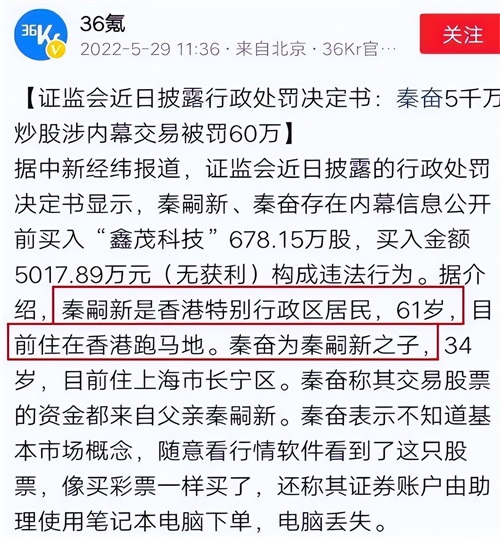 在去年5月底证监会发布的一则通告中提到,秦奋父子因为涉及暗箱操作被处罚了60万元。虽然这60万元对于秦奋来说不算钱,但是这一晚上的打赏费是没有了!