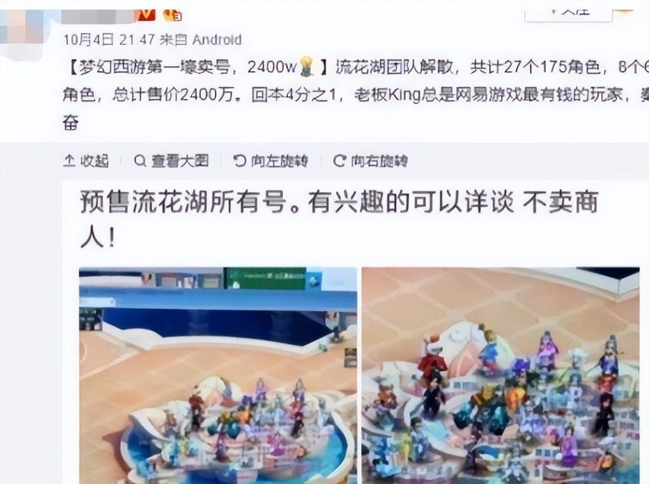 后来他又迷恋上了另外一个游戏《新天龙八部》,于是毫不犹豫地将梦幻西游的游戏账号打包出售,当时投入上亿,但是他却以2000多万的价钱出售。