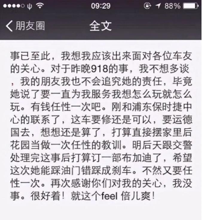 但是另一头的秦奋却毫不在乎,不仅不责怪,还直接选择将此车报废,并大手一挥又买了一辆布加迪。