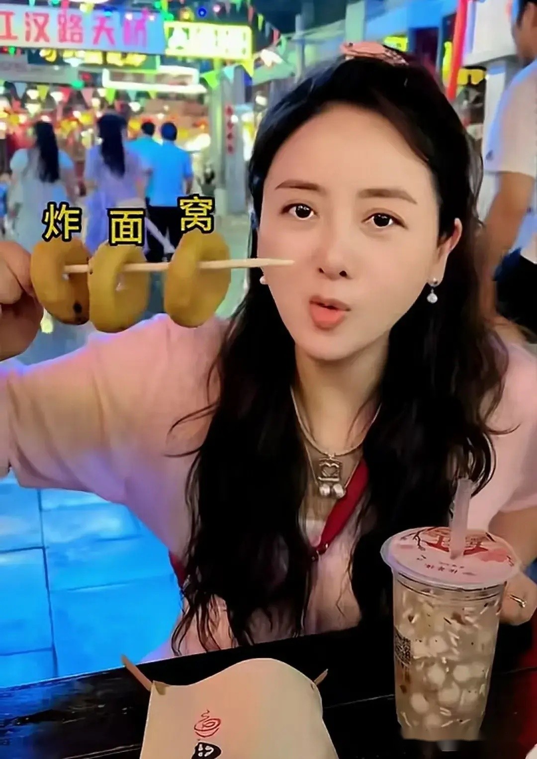 在小吃街,小李琳一家也是闲逛了好久,一边品尝着各种美食,一边给自己拍起了照片。