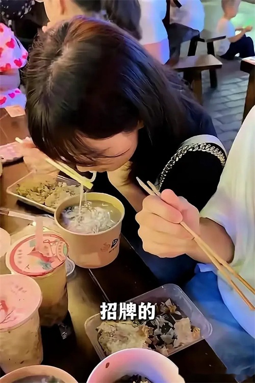 不止是在路边,小李琳在吃面条时还展现了自己特别大胃口的一面。