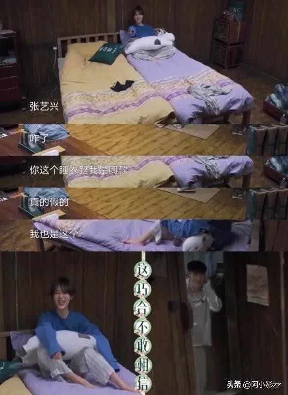 另外最戏剧性的一幕,晚饭过后,洗完澡杨紫发现张艺兴和自己的睡衣是一样款式的,妥妥的情侣衫,两人都无奈的笑了:“这下真说不清了。”难怪会被传绯闻,这让人不相信都不行呀!不得不承认这一期的笑点都被他两给承包了。像这种能跟大家产生奇妙效果的年轻嘉宾,真的太少了!所以杨紫必须上榜。