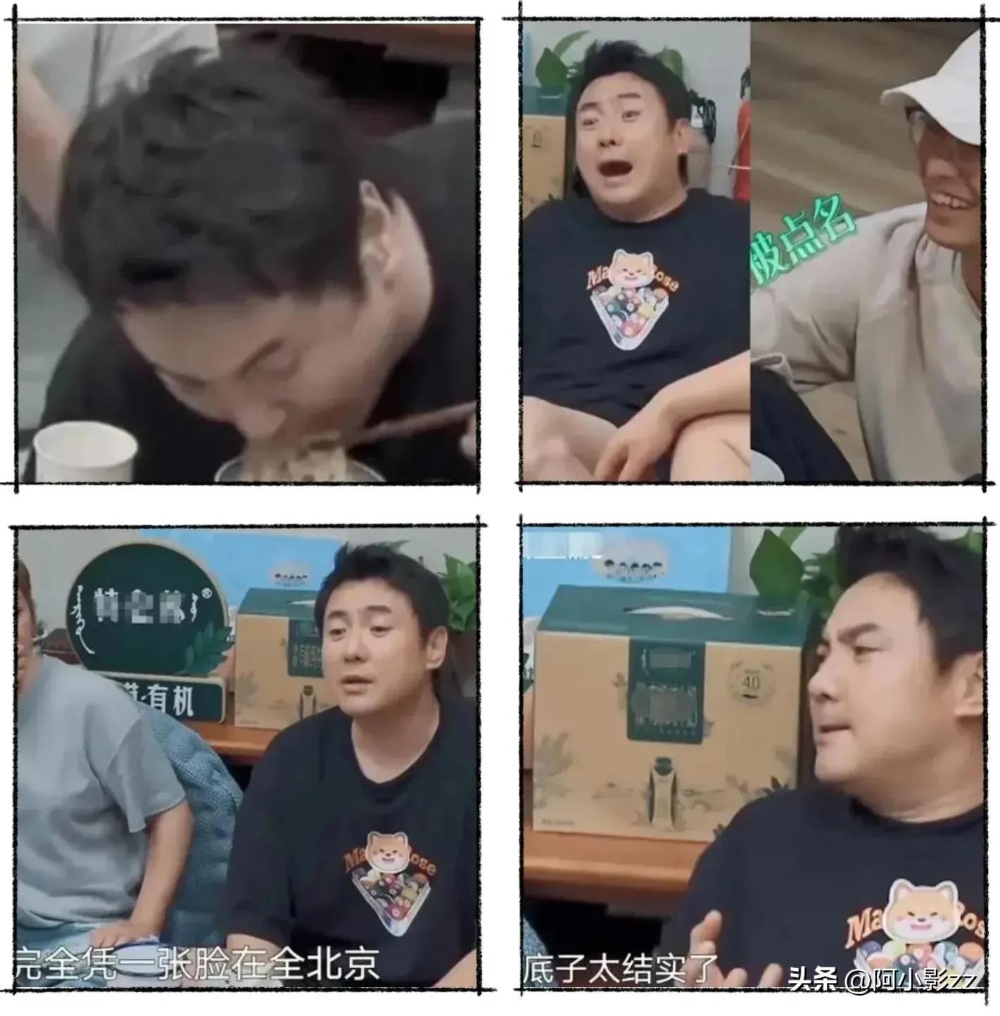 吃晚饭的时候,沈腾嘴上说着“演员晚上不该吃碳水”,实际就他吃的最多。还模仿徐峥上海口音,一直劝诫彭昱畅不要吃太多,要注意形象,自己当年艺考的时候就凭一张脸,底子太结实了,说彭昱畅的底子是80分,而自己是95分的底子。引得全场哈哈大笑,直接让观众把眼泪都笑出来了。