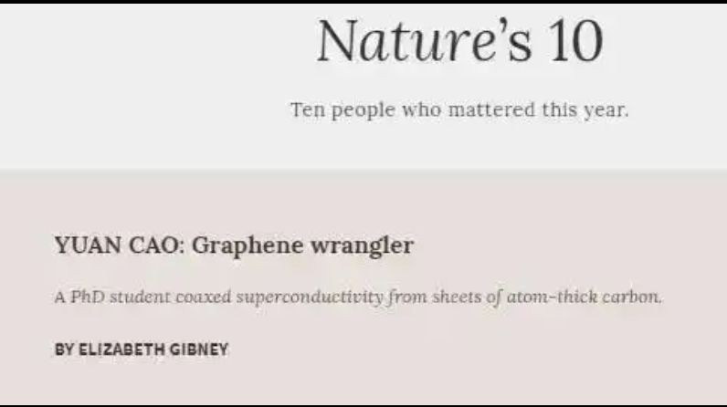 之后,22岁的曹原成为了该杂志创建以来,年纪最小的第一作者。他被称为“石墨烯驾驭者”,甚至有人猜测他“或将成为最年轻的诺贝尔奖获得者”。而他的研究成果也被誉为“第五大发明”,无数的顶级学者渴望从曹原的研究成果中,得到一些科研拓展。