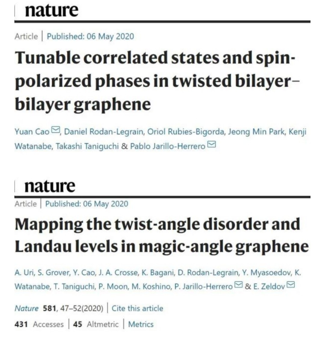 2020年5月,曹原又连着发了两篇《Nature》,通过这两篇论文,不难看出他对魔角石墨烯又有了拓展性的研究。也是在这年,24岁的曹原顺利获得博士学位。为了科研,曹原留在了麻省理工,从事博士后的研究工作。