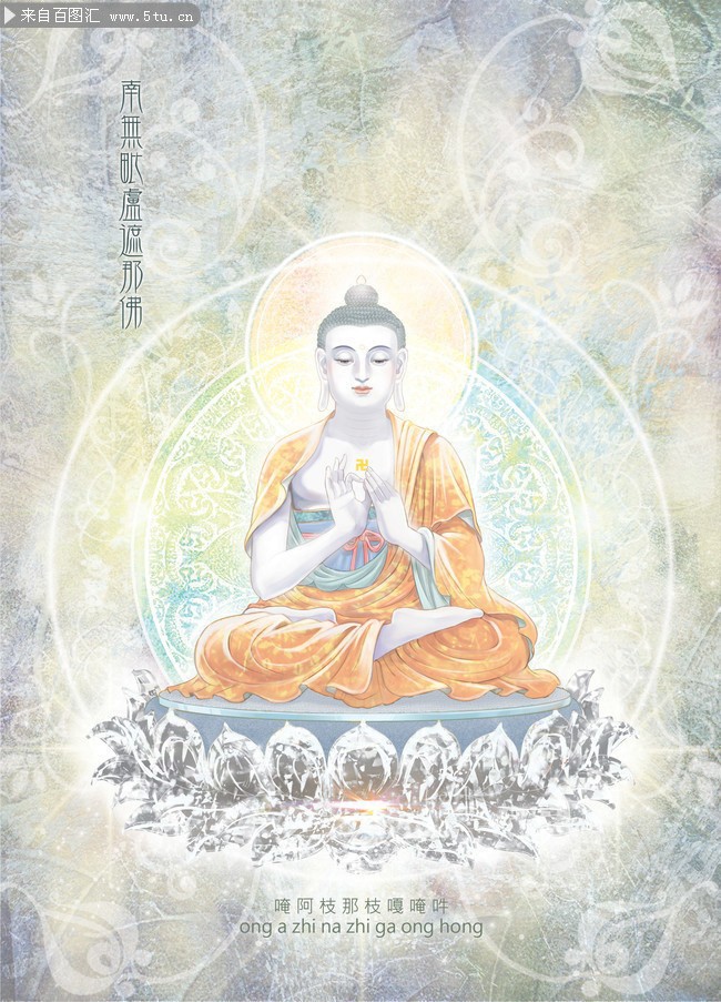 毗卢遮那佛又称大日如来,是法身佛,密宗五方佛之一,也是密宗最高阶层的佛。在佛教中,他代表着佛法的真理和教义的象征,是一切佛和菩萨的本原及所归之果体。