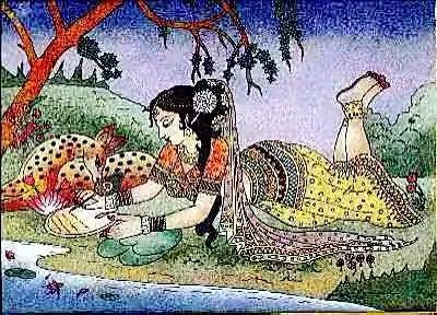 在沙恭达罗身上,作者表现了女子的很多可爱与美好之处,她天生丽质,纯洁善良,富有生命激情,充满青春活力。情窦初开时,她在荷叶上提诗:“你的心我猜不透,但是狠心的人呀,日里夜里,爱情在剧烈地燃烧着我的四肢,我心里只有你。”碰到了意中人,她虽有羞怯却义无反顾地追求爱情。