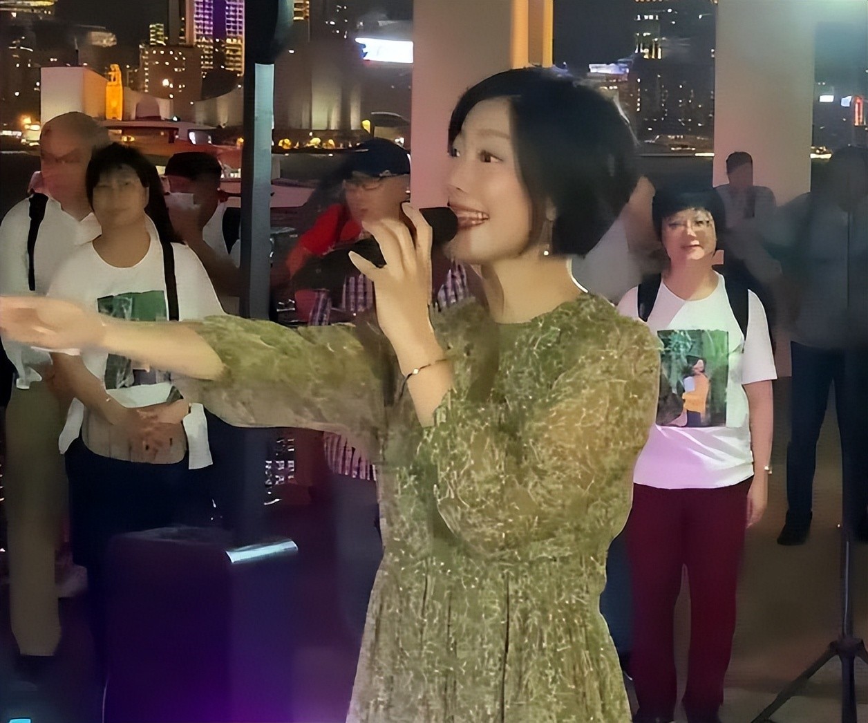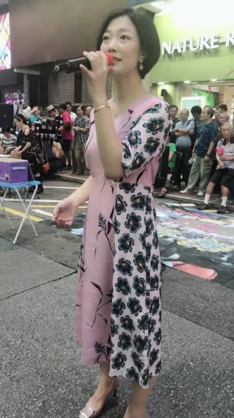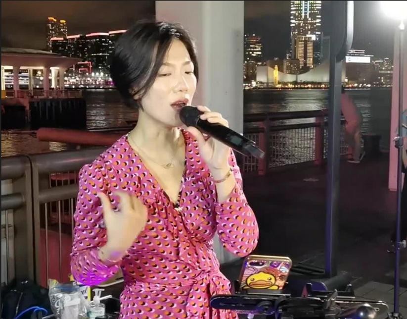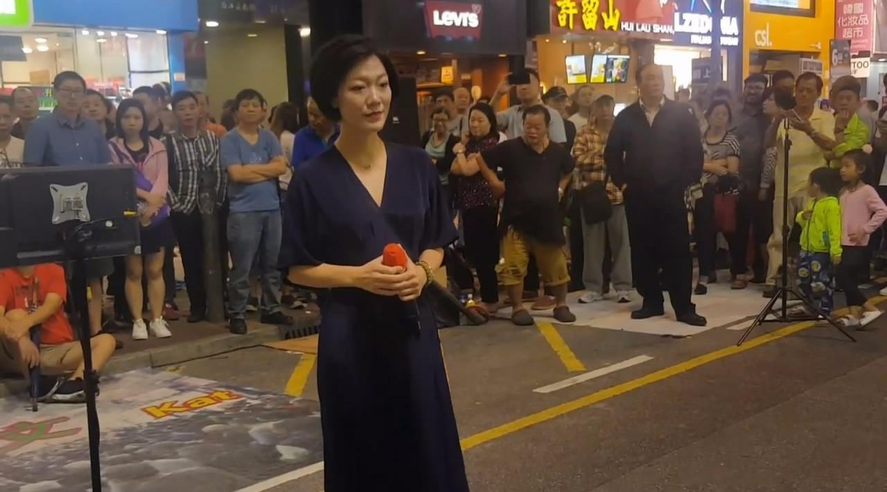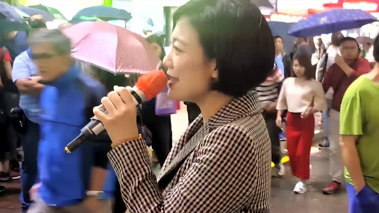 她拿起麦克风就像多年前那样,在街头唱起了歌。