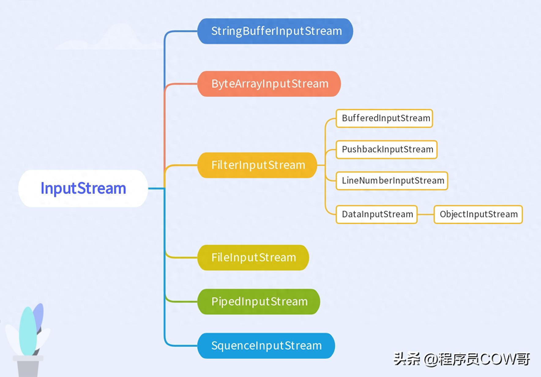 InputStream 为字节输入流,它本身为一个抽象类,必须依靠其子类实现各种功能,此抽象类是表示字节输入流的所有类的超类。 继承自InputStream 流是向程序中输入数据的,且数据单位为字节(8bit);