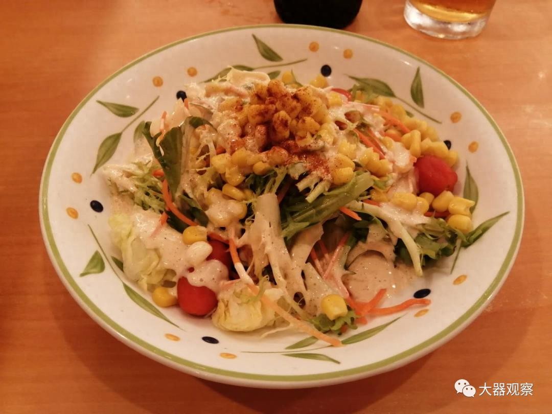 我分辨不出这7块一份的沙拉跟市面上30多块的沙拉到底味道和用料上的区别在哪,这盘沙拉该有的大小蔬菜基本都有,仅仅是沙拉酱是市面上可买到的味道。