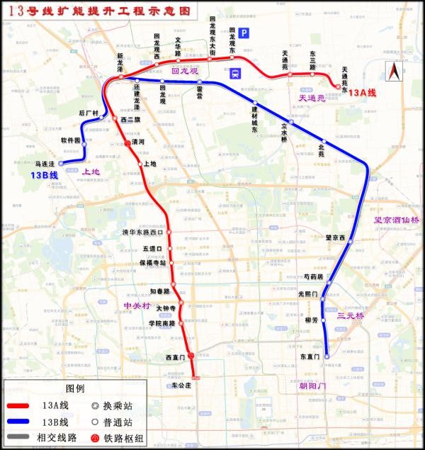 作为国内最大规模的既有地铁线改造工程,北京地铁13号线扩能提升工程目前已经复工。工程实施后,13号线将从一条倒“U”型线拆分成13A线和13B线两条线路,提升回龙观、天通苑地区的轨道交通运输能力。