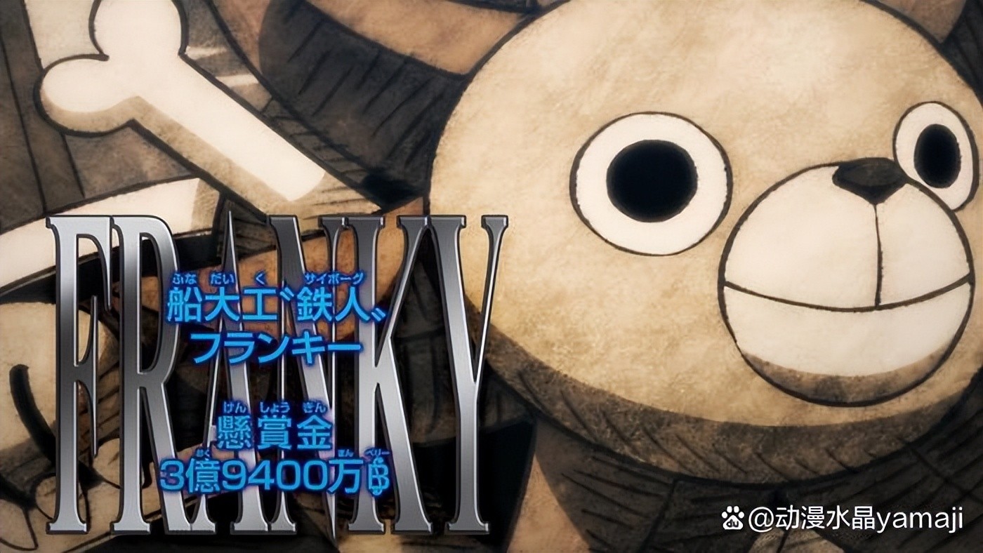 可怜的弗朗奇这次动画给出悬赏金时没给正脸,给了悬赏金3亿9400万,但露脸的却是万里阳光号。算了,这也是他的作品,凑合一下。