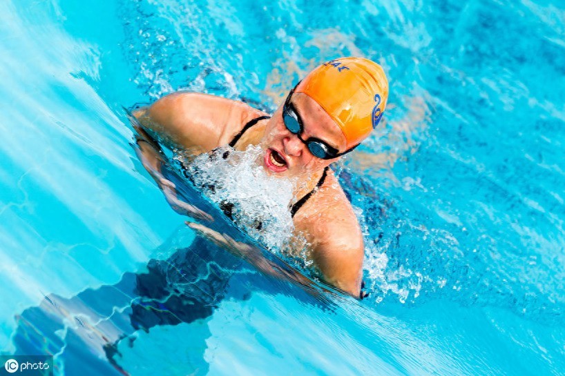 在游泳中要快速而短促的吸气,初学者在快吸之后,由于胸腔突然增加气压,很容易造成反射性的快速呼气,使气体交换不充分,为了适应这种压力,不把刚吸入的新鲜空气吐掉,快速吸气后要有一个短暂的闭气过程。 出水用力呼气 4 在水中闭气后慢慢抬头出水,同时用嘴鼻慢慢向水里吐气,到最后嘴将露出水面和吸气前的时候,要加速用力呼气,把鼻腔和口腔的残留水珠及嘴前的水吹开,为吸气创造条件,同时由于最后用力把废气尽量呼出,可以吸入更多新鲜的空气。