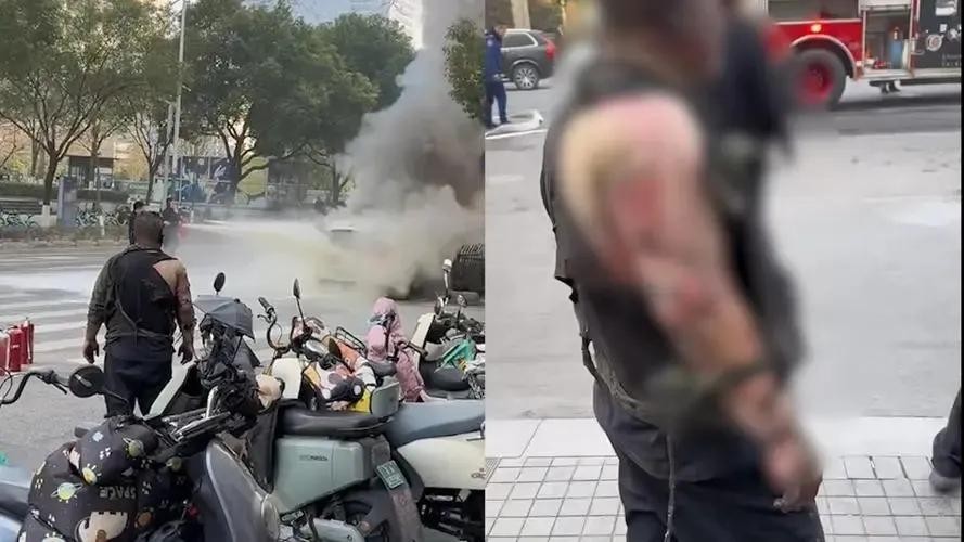 司机从死亡线上得救了,但是陈竹的手臂被烈火灼伤,他的勇敢行为感动了无数网友,我们要为他的勇敢善良喝彩