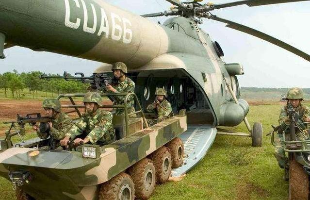 山猫全地形车是近几年解放军装备的小型全地形突击车,不仅尺寸小巧,而且机动性非常强悍,能轻松穿越沼泽、雪地、山林、池塘、溪流等恶劣地形,并且刚好能塞进现役的运输直升机进行空中机动。现在已经发展了一个车族,不仅有搭载重机枪和还有火箭炮、迫击炮甚至榴弹炮的版本。