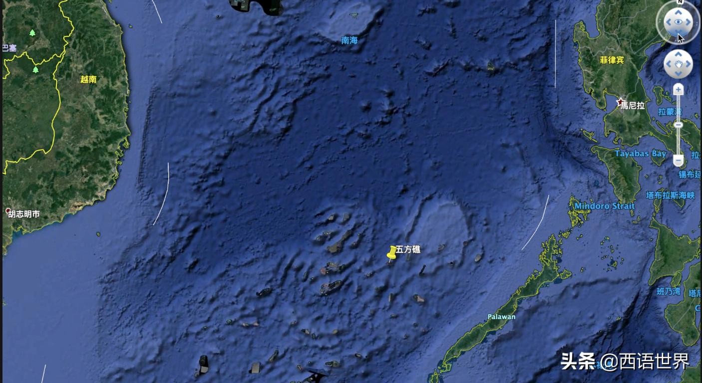 从地理上看五方礁,它在中国南海礼乐滩的南边,
