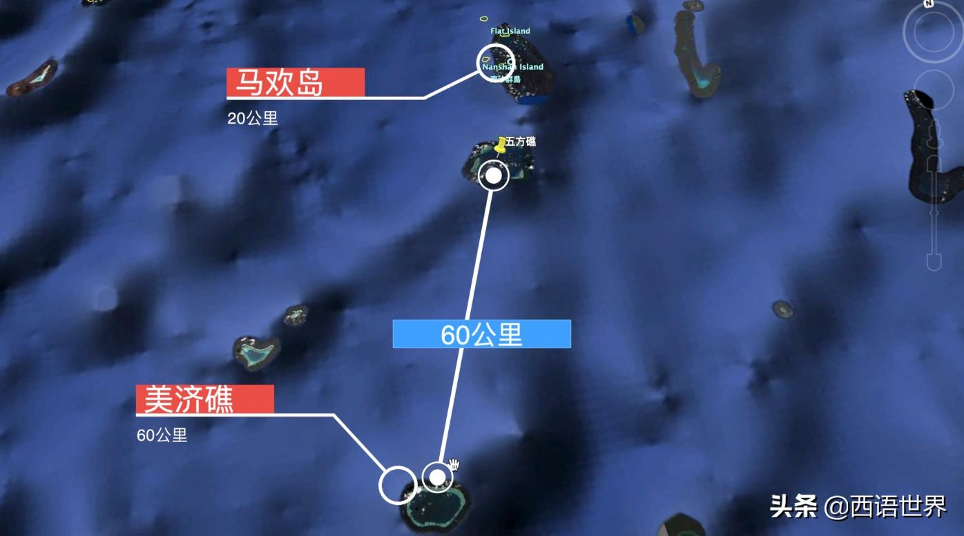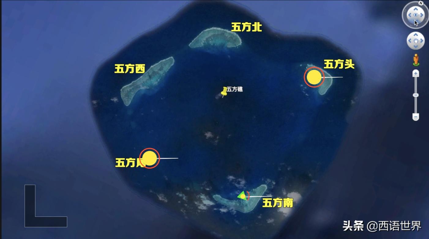 南海五方礁,距离永兴岛790公里,是礼乐滩的门户
