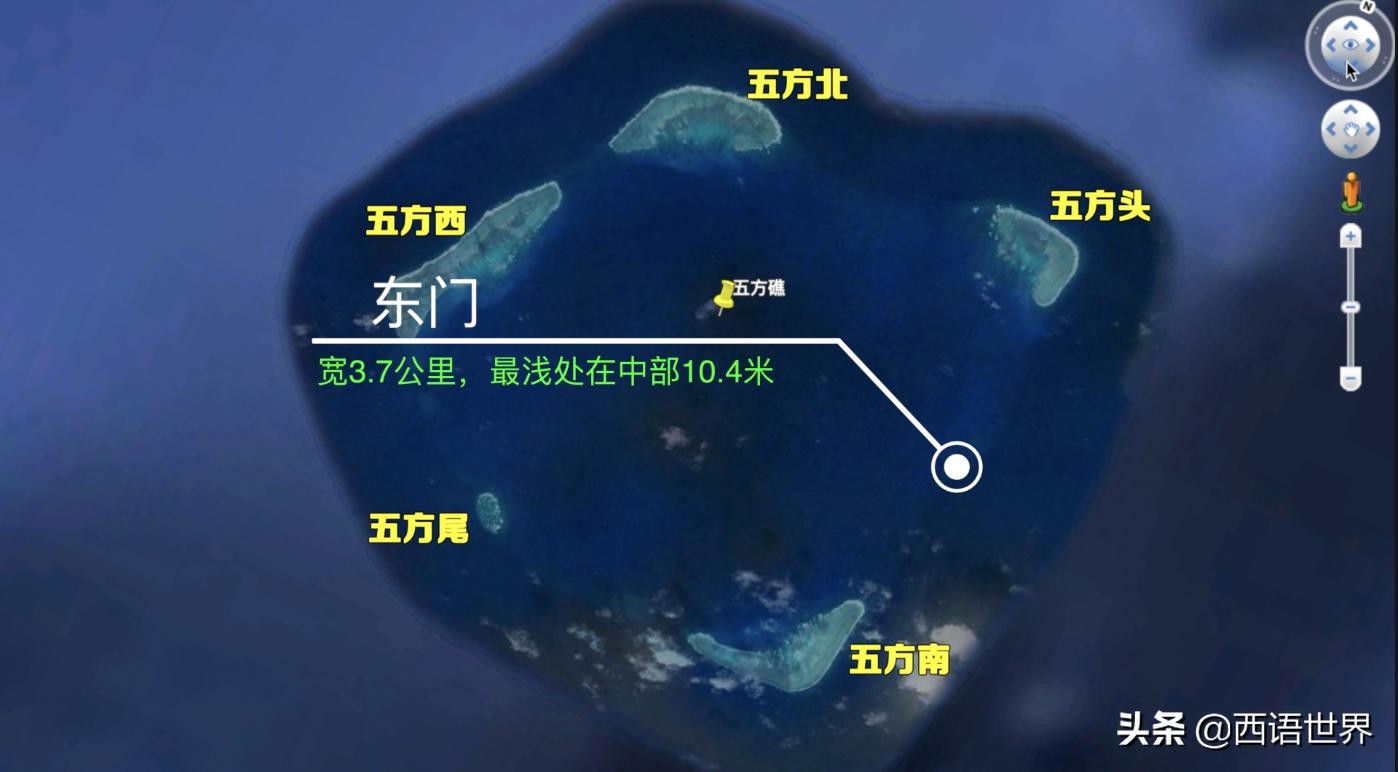 东门宽3.7公里,最浅处在中部10.4米,门东侧有点礁,水深10.1米;