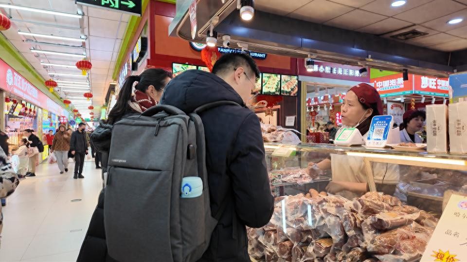 记者采访了一位正在忙碌的超市店员,其表示:“今天生意特别好,尤其是熟食区,猪头肉卖得特别快,我们都在加班加点地补货。”