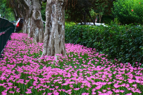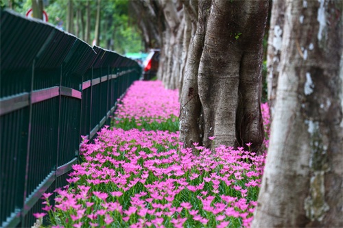 这个七月,给人印象最深刻或许是夏日的狂风暴雨,而,在通往市区的白莲机场迎宾路旁,有韭兰如梦幻般地绽放着,格外引人注意,成为一道亮丽的风景线。