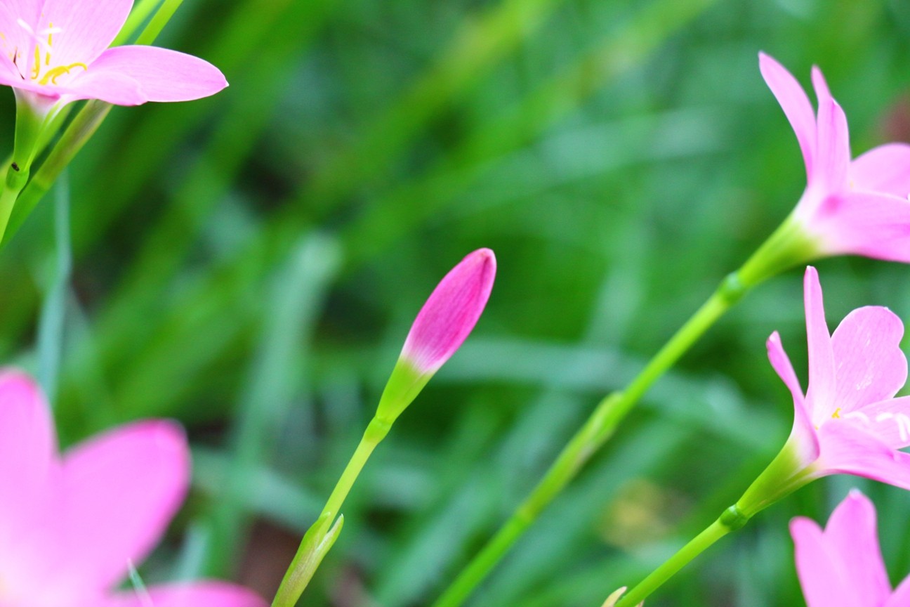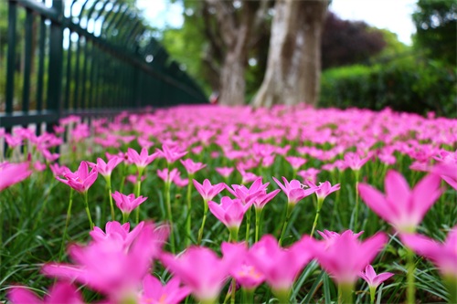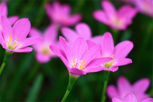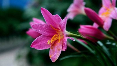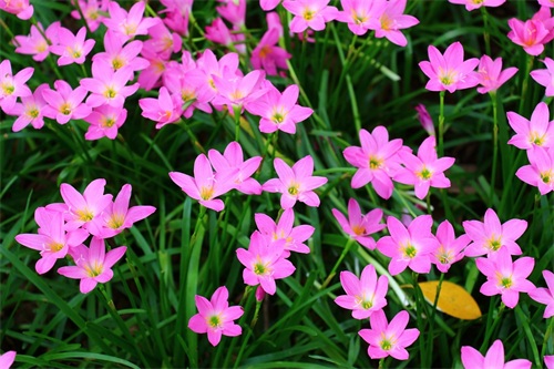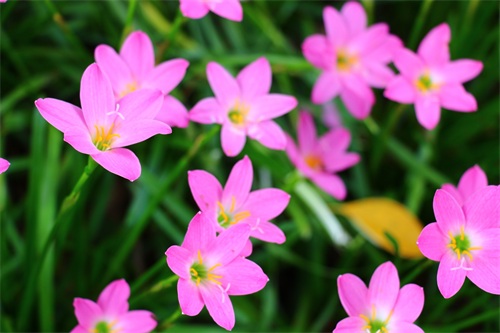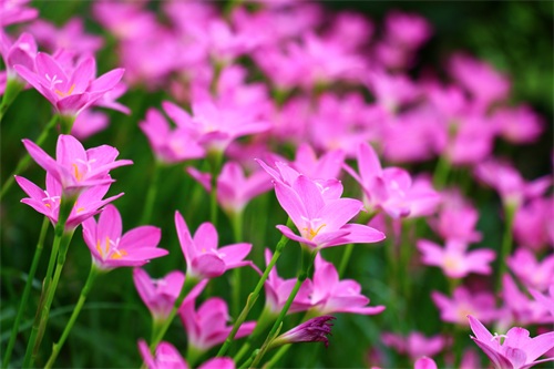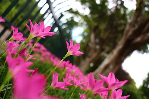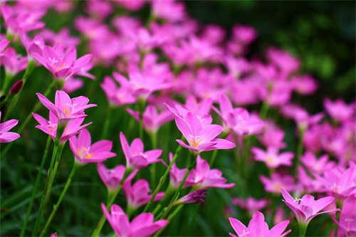 风雨兰喜阴,产于美洲热带,韭兰株高约15-30厘米,成株丛生状。叶片线形风雨兰,极似韭菜。花茎自叶丛中抽出,花瓣6枚。韭兰花形较大,呈粉红色。韭兰花期4-9月;适合庭园花坛缘栽或盆栽。风雨兰花型像百合,所以又称雨百合(rainlily),颜色有粉红色、浓桃红色、黄色及白色等。
