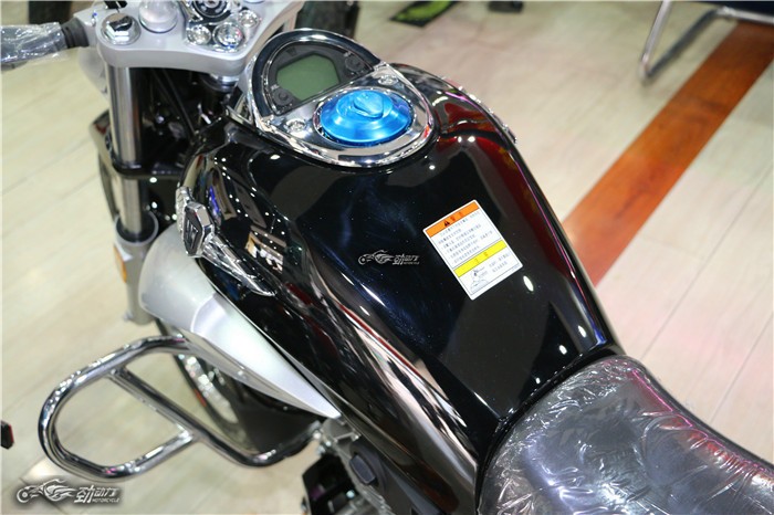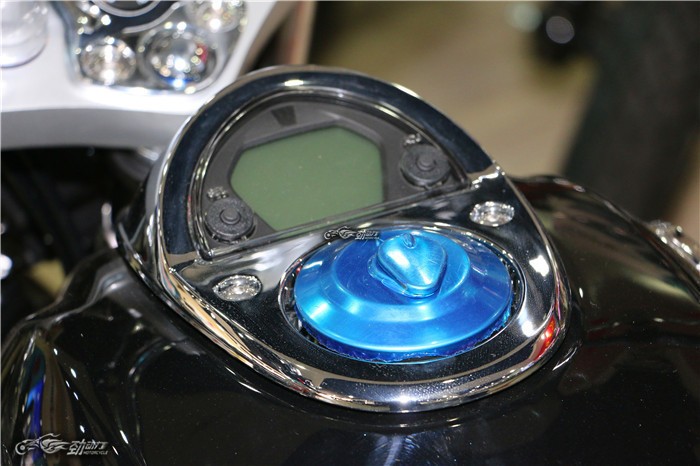 仪表是该车的一大亮点,采用了分体式设计,指针式速度表依然安装在传统位置,而液晶屏幕被安置在了油箱上,油量、主副里程都可以通过它来读取。