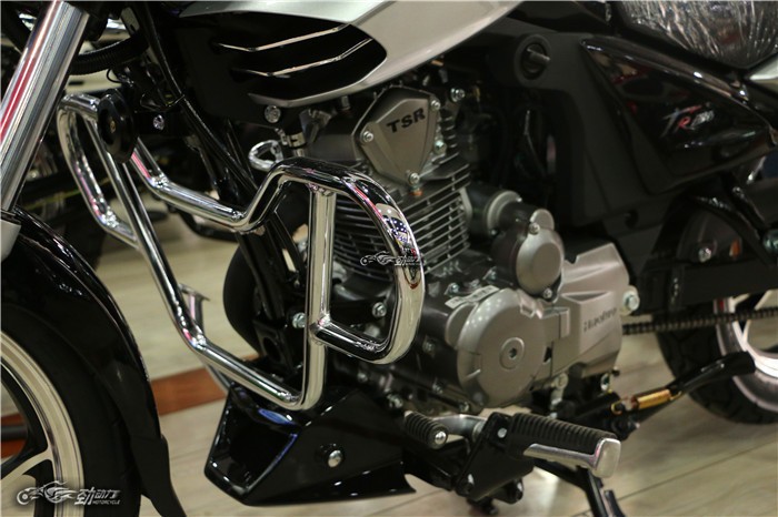 TR150采用单缸风冷化油器发动机,实际排量为149毫升。不仅配备了原厂护杠,还配有反冲踏杆的启动方式,以备不时之需。