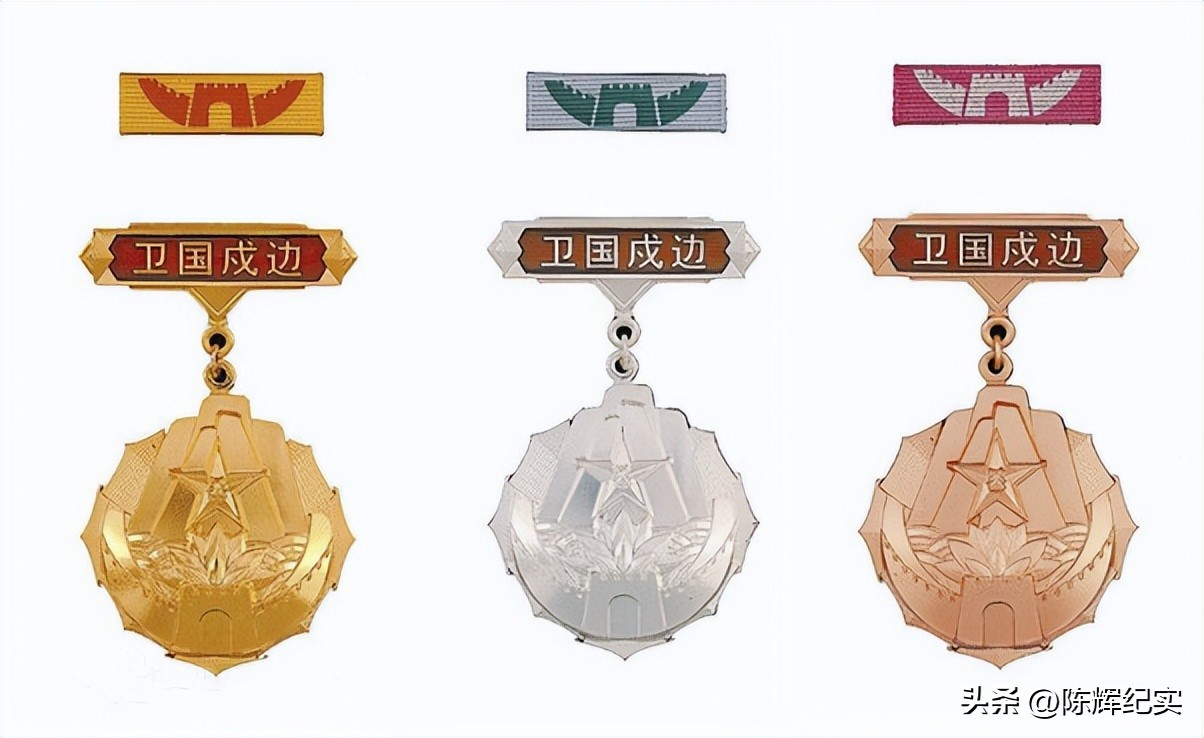 ——卫国戍边纪念章。此纪念章是为表彰戍守边关的人民解放军指战员和人民武装警察官兵而专门颁发的奖章,是中国人民解放军总政治部根据《中国人民解放军纪律条令》的有关规定设计制作的,于2011年8月1日起全军正式启用的纪念章。