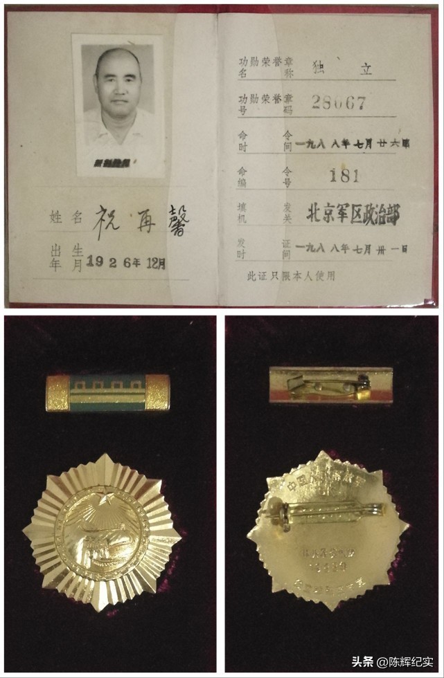 北京军区离休干部祝再馨获得的独立功勋荣誉章