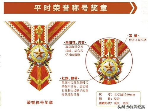 荣誉称号奖章,分为战时、平时、重大非战争军事行动荣誉称号奖章。