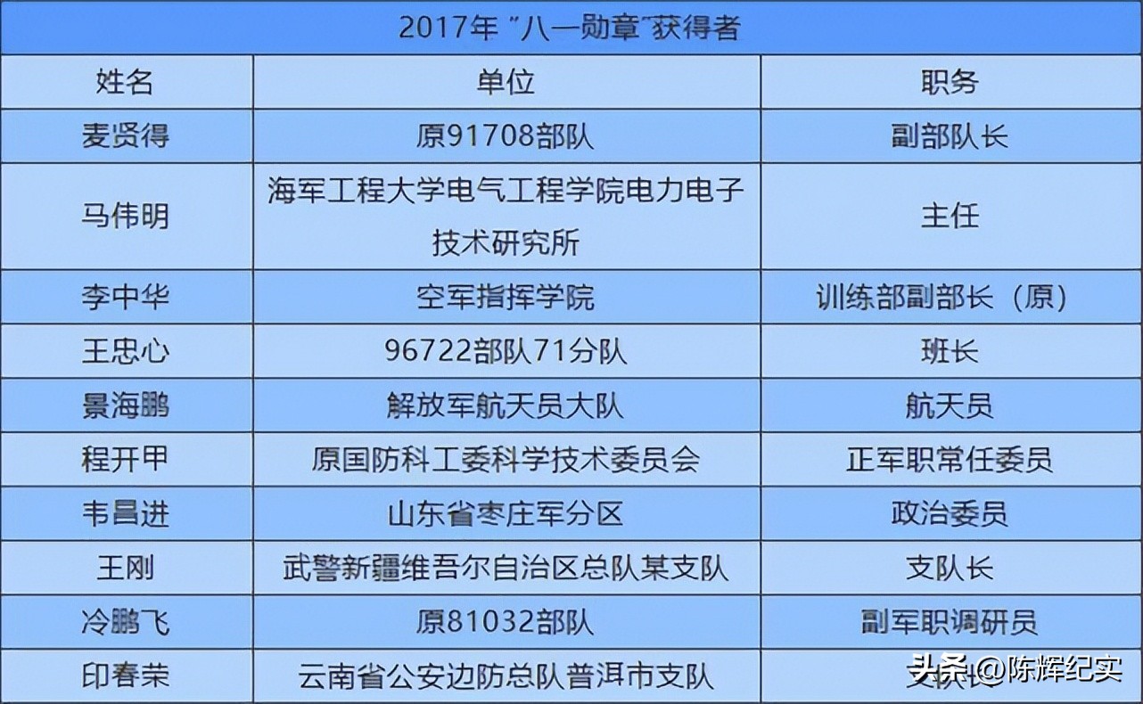 获得名单首批“八一勋章获得者共10人。