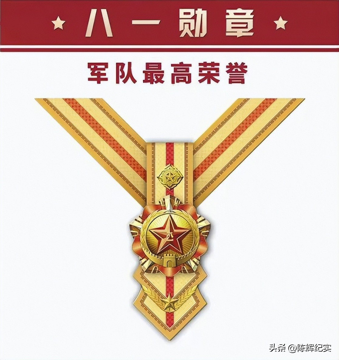 “八一勋章”是军队最高荣誉,由军徽、旗帜、长城、橄榄枝等元素构成。
