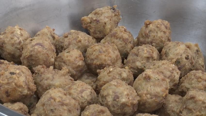 在制作区,黄陂三鲜传人黄雄正在忙碌着,清香Q弹的鱼丸加上外酥里嫩的肉丸、鱼肉兼香的肉糕,共同组成誉满全国的黄陂三鲜,也成为黄陂人新年中不可或缺的浓浓年味。