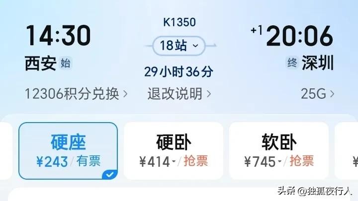 今天就为大家介绍这趟,由广铁集团开行,长沙客运段担当,运行于西安站至深圳站的K1350次快速列车。为什么挑这趟列车向大家介绍呢?主要是因为K1350在西安发车的时间,跟到达深圳的时间都比K448要好,下了车即可坐地铁回自己在深圳的住所,且还会停靠东莞站,对于很多去往东莞、深圳的人,这趟列车确实不错。但对于需要去广州的人,可能不太友好,在广州境内一座车站都没停靠,这种情况不多见啊!