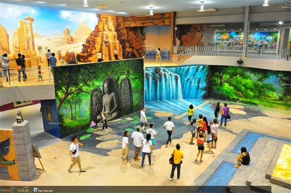 芭堤雅3D幻觉立体美术馆,与泰国其他美术馆不同,可谓老少咸宜。一家人沉浸在3D画作所呈现的新奇有趣的立体观感喜悦中,根据馆內提示的角度与画作中的人物、动物等互动。