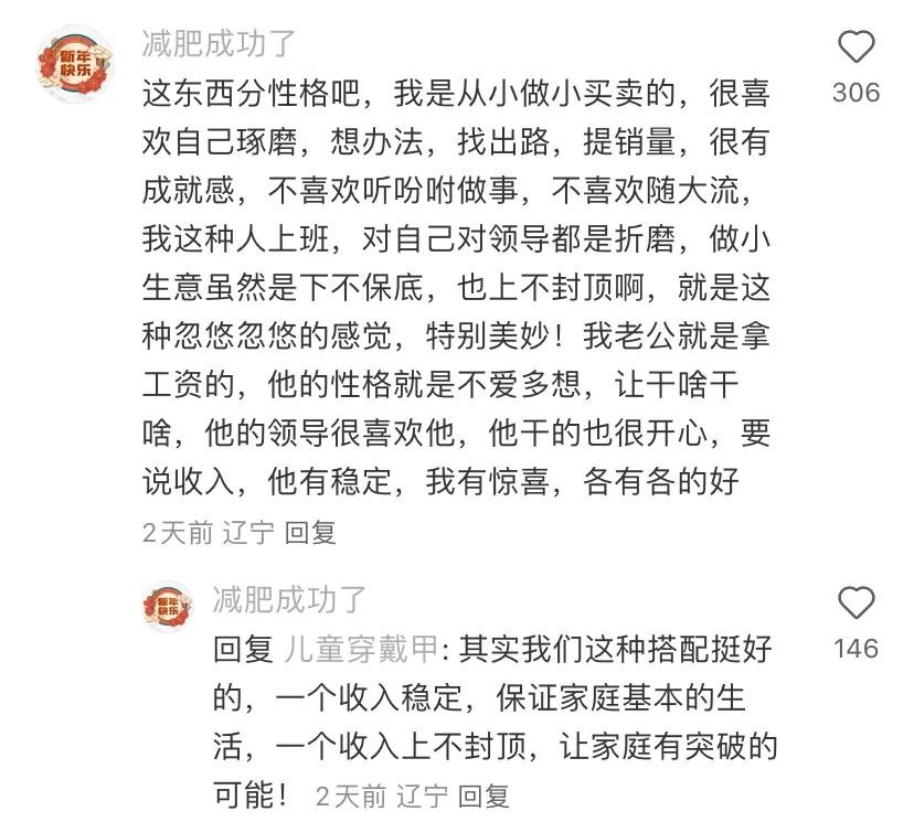 看性格,有人就适合做生意,而有的人适合安稳地上班,不多想不多做