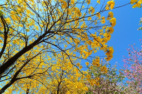 黄花风铃木它的花语有感谢之意。四季轮回,每一季都是一种完全不同的感情
